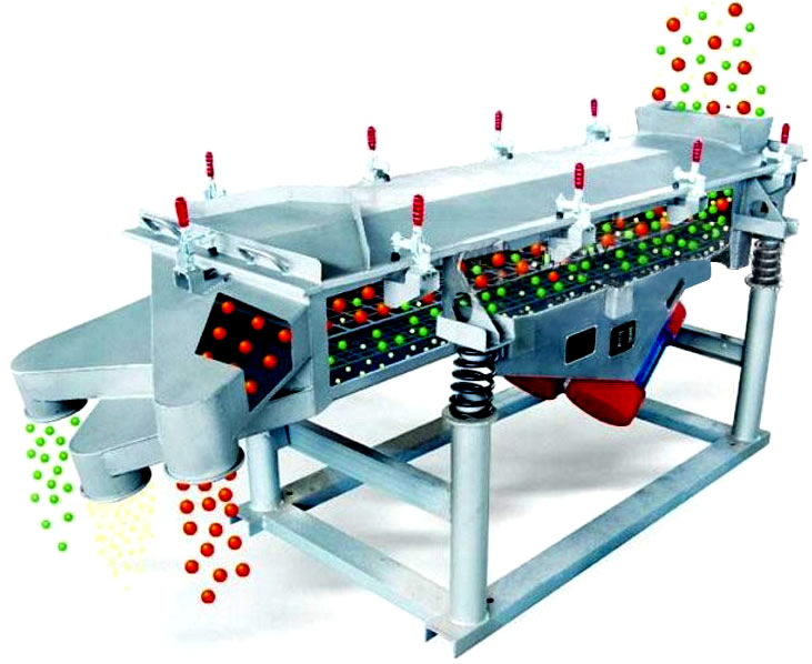高頻篩是細(xì)粒物料篩分分級(jí)的有效設(shè)備,該高頻篩是采用自同步振動(dòng)器激振,在激振力的作用下,篩機(jī)做高頻往復(fù)直線運(yùn)動(dòng)。與普通篩分設(shè)備的原理不同,由于 高頻篩(高品篩)采用了高頻率,一方面破壞了礦漿表面的張力和細(xì)粒物料在篩面上的高速振蕩,加速了大密度(比重)有用礦物和析離作用,增加了小于分離粒度物料與篩孔接觸的概率。從而造成了較好的分離條件,使小于分離粒度的物料,特別是比重大的物粒和礦漿一起透過篩孔成為篩下產(chǎn)物。高頻篩廣泛適用于選礦、選煤、化工、制磚、食品、制藥、制堿、化肥、造紙等行業(yè)中多種物料的干法、濕法篩分、分級(jí)、脫水。