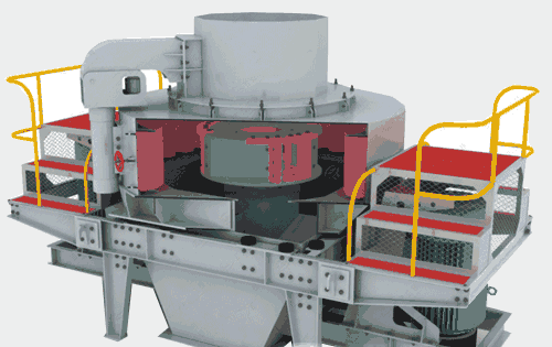 物料由進(jìn)料斗進(jìn)入制砂機(jī),經(jīng)分料器將物料分成兩部分,一部分由分料器中間進(jìn)入高速旋轉(zhuǎn)的葉輪中,在葉輪內(nèi)被迅速加速,其加速度可達(dá)數(shù)百倍重力加速度,然后以60-70米/秒的速度從葉輪三個(gè)均布的流道內(nèi)拋射出去,首先同由分料 器四周自收落下的一部分物料沖擊破碎,然后一起沖擊到渦支腔內(nèi)物料襯層上,被物料襯層反彈,斜向上沖擊到渦動腔的頂部,又改變其運(yùn)動方向,偏轉(zhuǎn)向下運(yùn)動,從葉輪流道發(fā)射出來的物料形成連續(xù)的物料幕。這樣一塊物料在渦動破碎腔內(nèi)受到兩次以至多次機(jī)率撞擊 、磨擦和研磨破碎作用。被破碎的物料由下部排料口排出。和循環(huán)篩分系統(tǒng)形成閉路,一般循環(huán)三次即可將物料破碎成20目以下。在整下破碎過程中,物料相互自行沖擊破碎,不與金屬元件直接接觸,而是與物料襯層發(fā)生沖擊、磨擦而粉碎,這就減少了角污染,延長機(jī) 械磨損時(shí)間。渦動腔內(nèi)部巧妙的氣流自循環(huán),降低了粉塵污染。